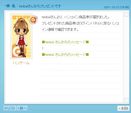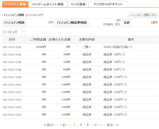 2011/10/12 ハンゲームアカウントがハッキングに遭いました。